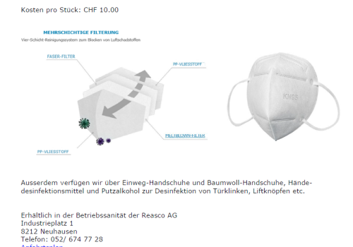 Atemschutzmasken in der Betriebssanität der Reasco AG
