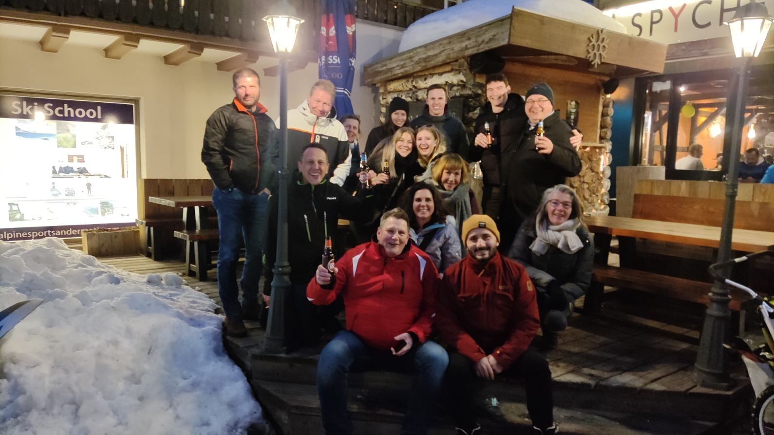 Unsere coole "Truppe" vor der Après-Ski-Bar SPYCHER" in Andermatt