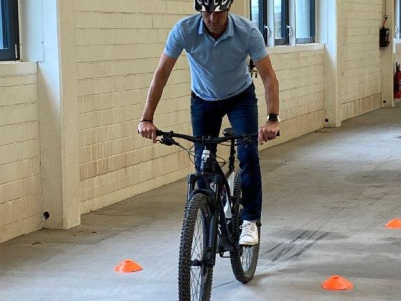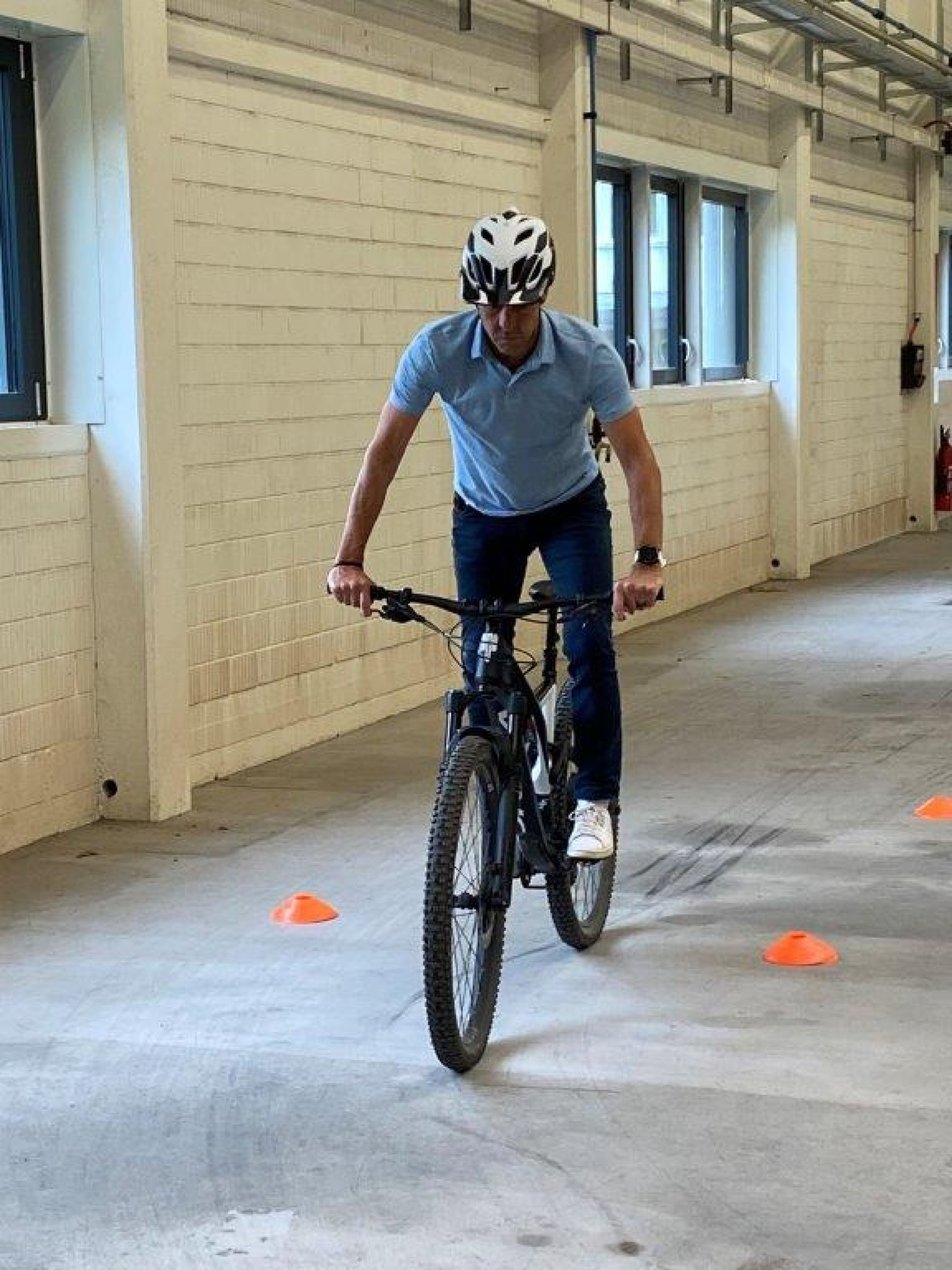 Die Schulung fand auf dem SIG-Arel in einer dafür geeigneten Halle statt und dauerte 90 Minuten. Die Teilnehmer konnten viel profitieren und dank der praktischen Übungen mit ihren Fahrrädern gleich einiges ausprobieren und üben.
