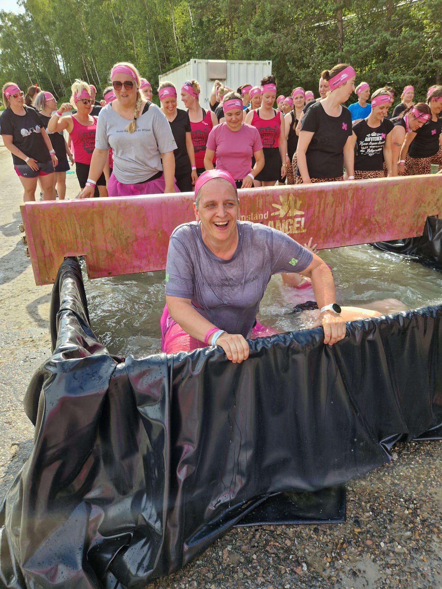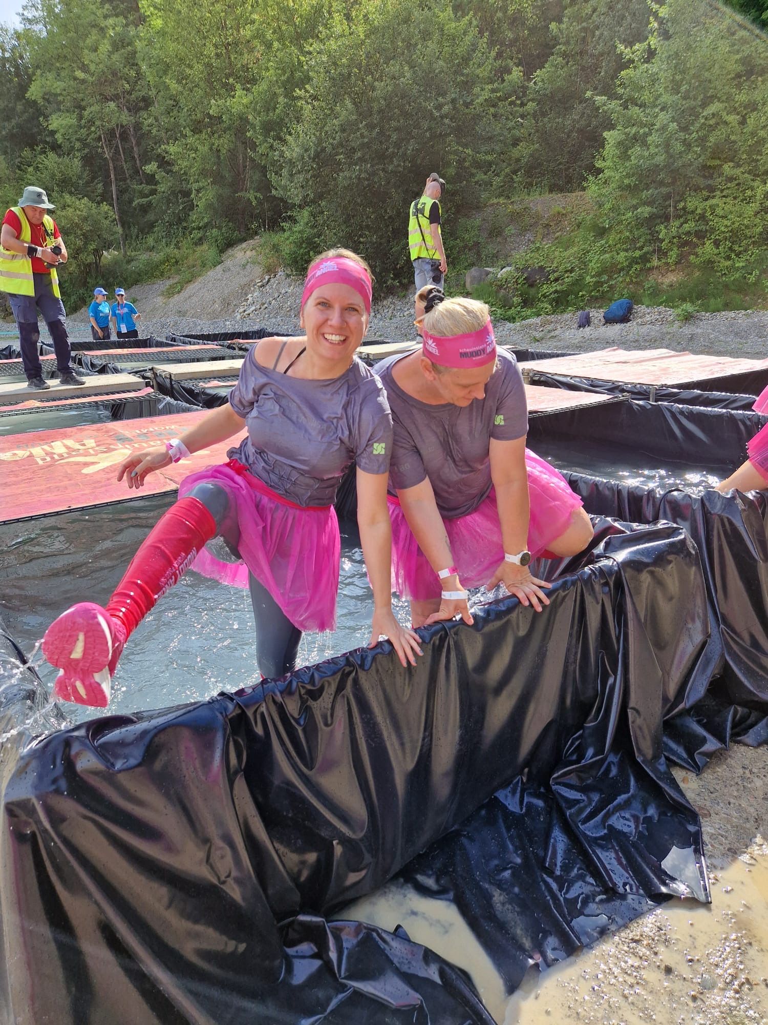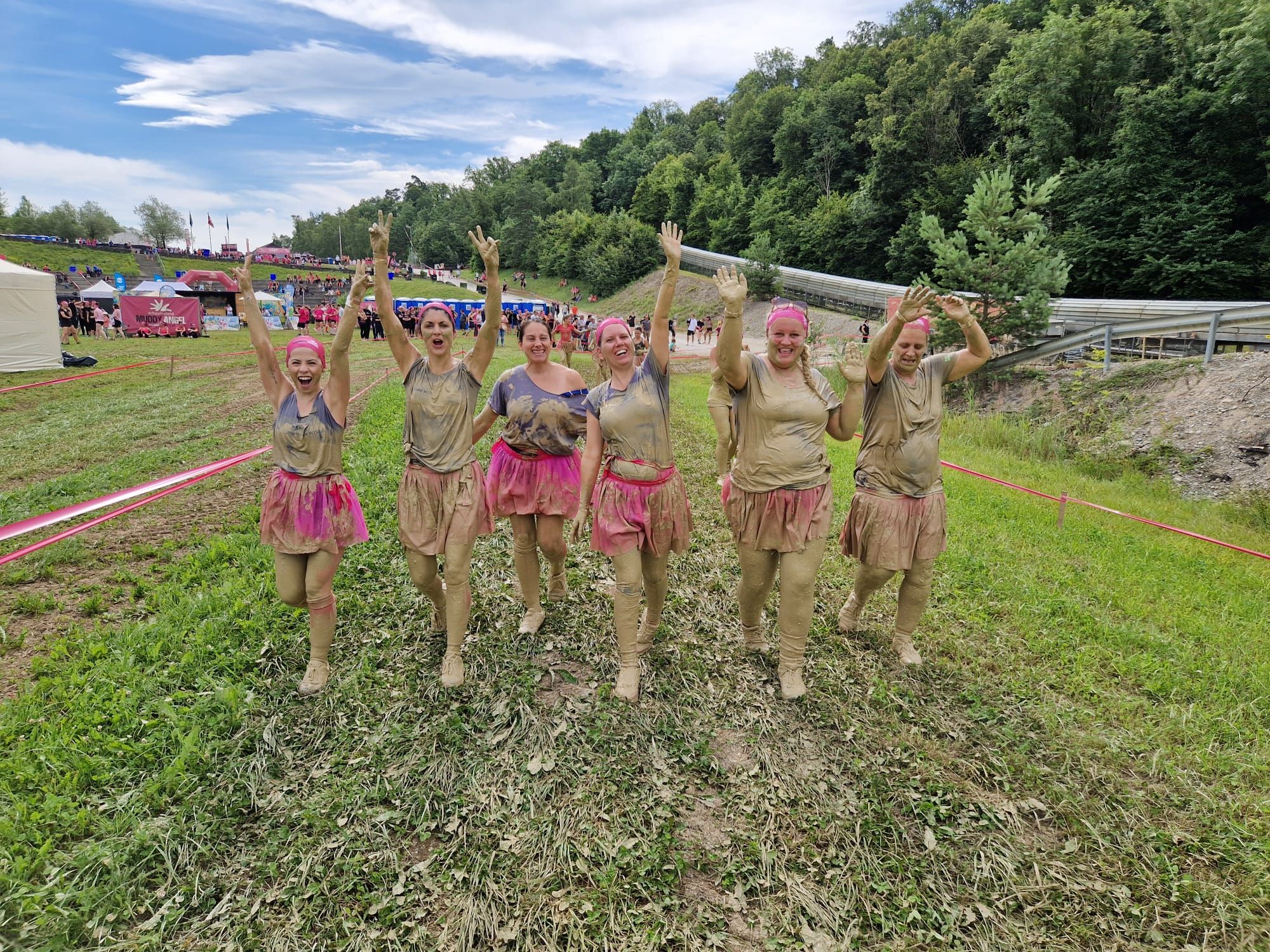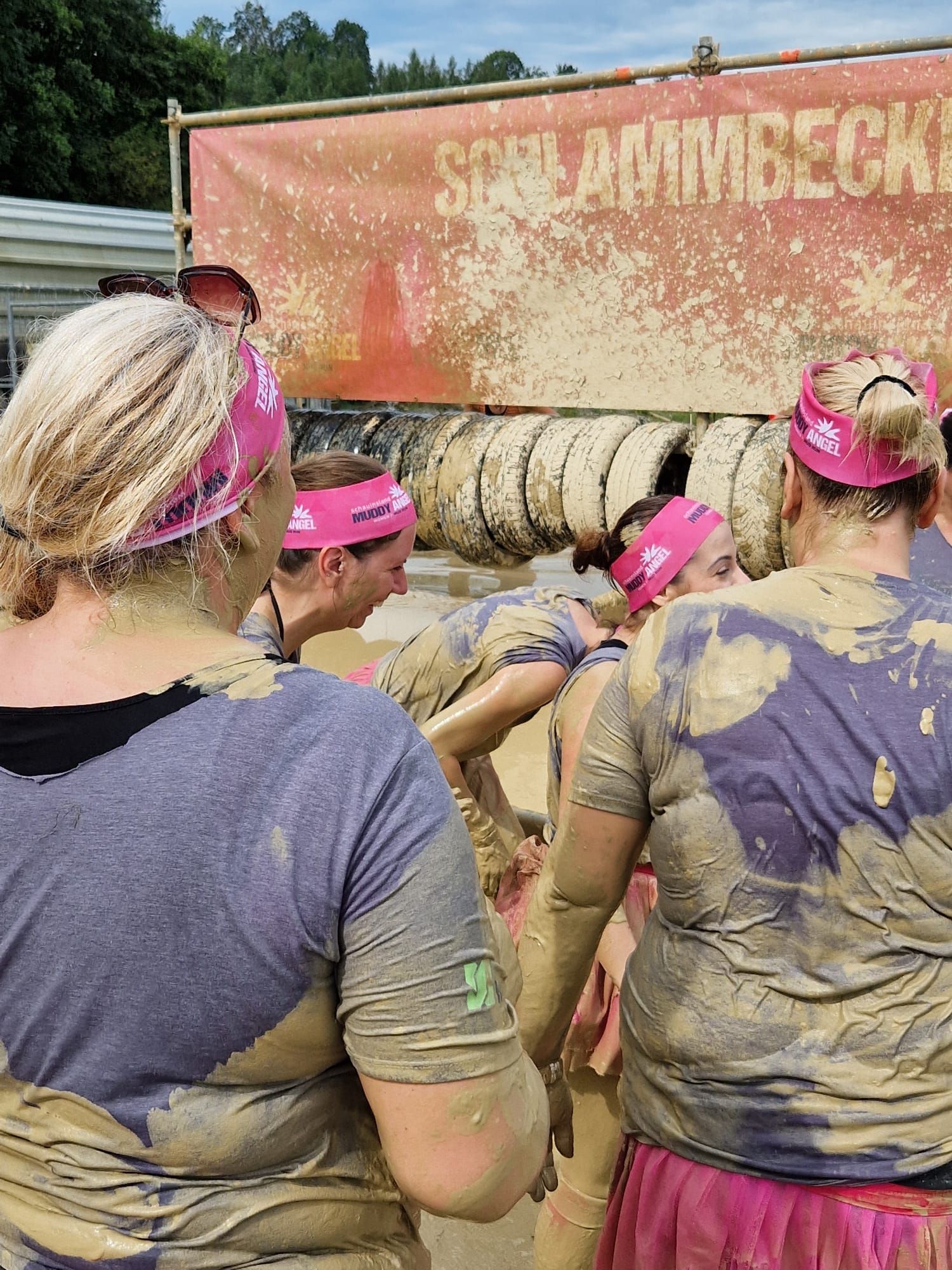 Die mutigen "Mudd-Moiselles de WISAG" absolvierten einen rund fünf Kilometer langen Hindernislauf, um ein Zeichen gegen Brustkrebs zu setzen. Zusätzlich zu ihrem sportlichen Outfit trugen die Teilnehmerinnen daher ein Tutu in knalligem Pink.