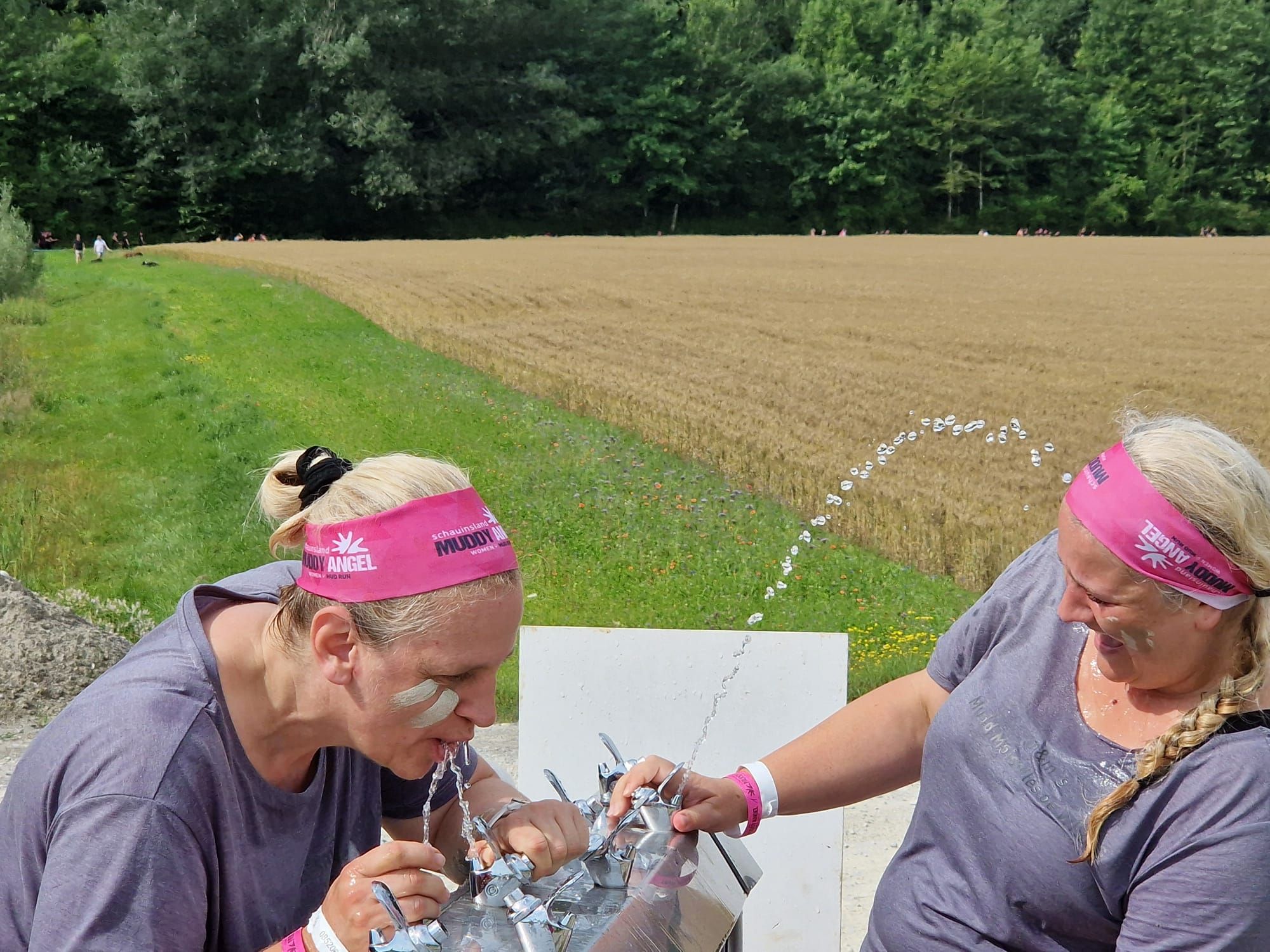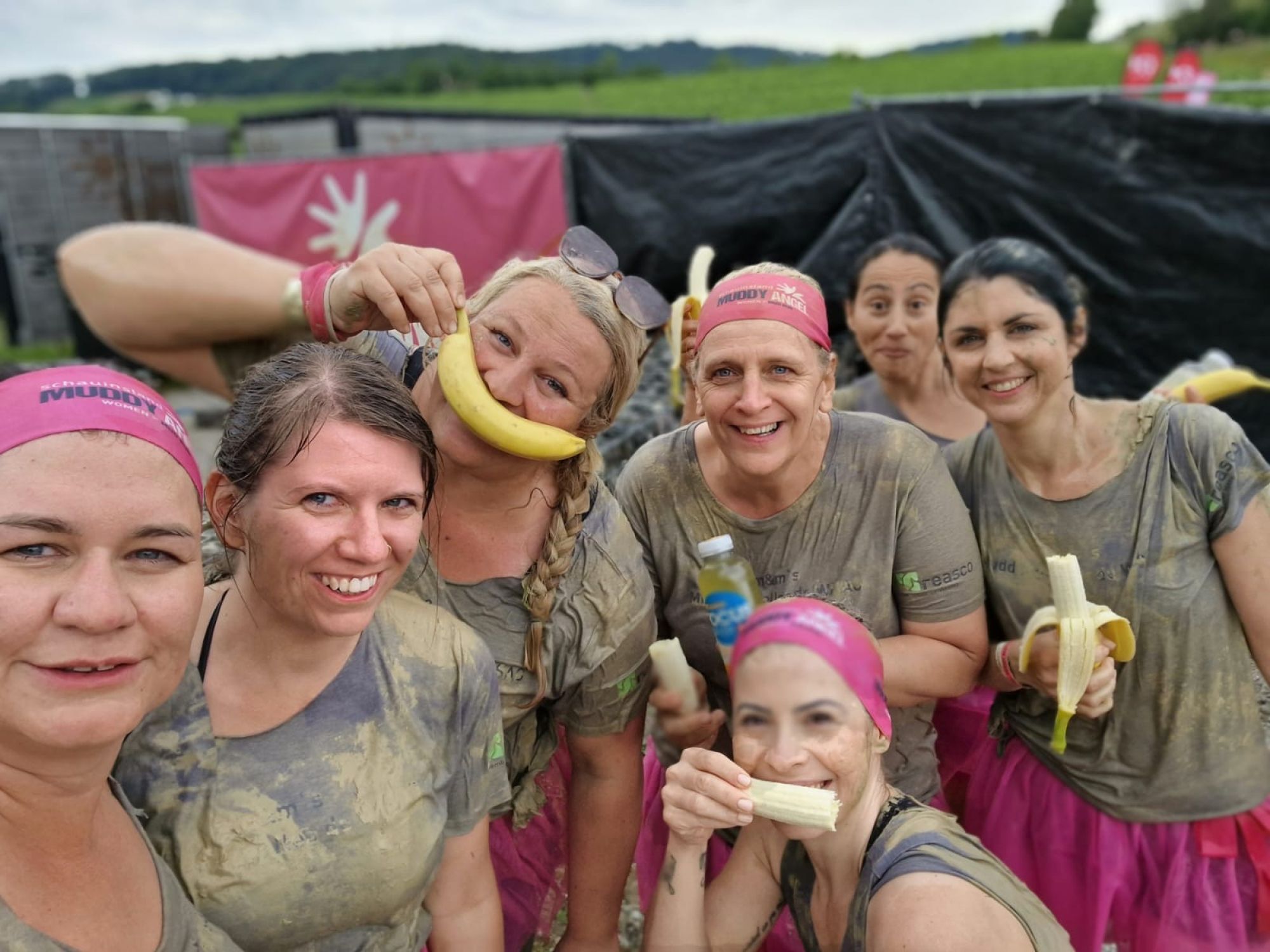 Der Parcours führte an idyllisch anmutenden Weinbergen vorbei, die eine prächtige Kulisse boten. Vor dem Zieleinlauf in das Amphitheater Hüntwangen galt es, insgesamt 15 Stationen zu meistern. Ob beim Aufstieg zur Container-Rutsche, im Schlammbad, bei der Schaumparty, im Tauchbecken oder auf der Krabbelstrecke - unsere "Mudd-Moiselles" waren mit viel Spass, vollem Körpereinsatz und tollem Teamgeist unterwegs.